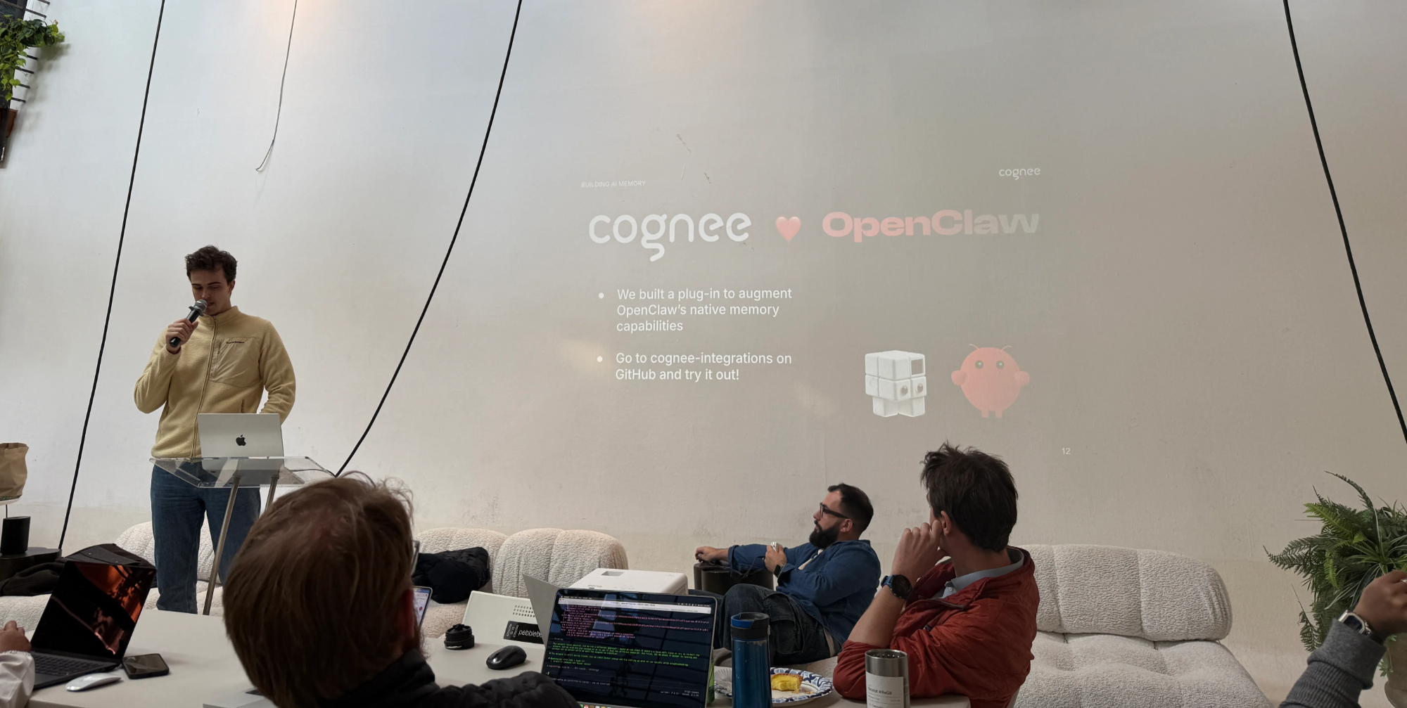 OpenClaw, the open-source personal AI assistant framework created by Peter Steinberger, has taken the developer world by storm in the last month. We wrote about it’s incredibly fast growth in our previous blog post (What OpenClaw is and how we give it memory with cognee) and even tested our plugin for the first time with the community on Feb 7th, in our AI-Memory Hackathon we hosted in SF together with our partners.
